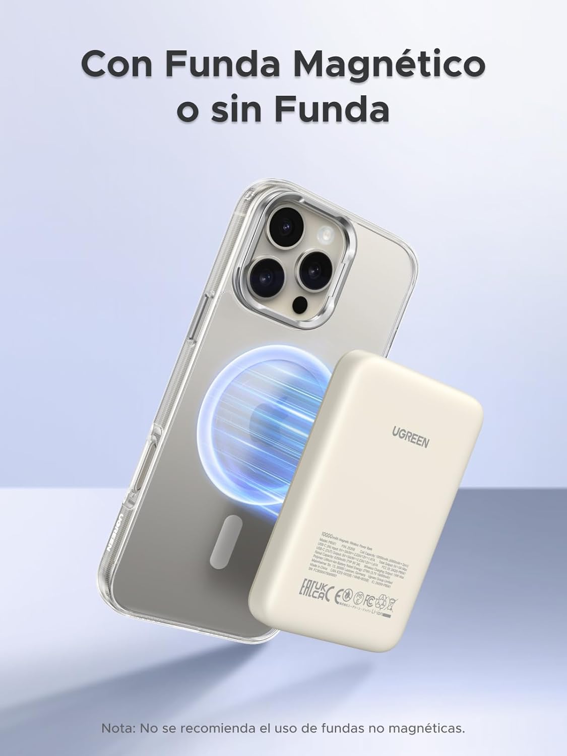 | Característica especial | Indicador LED, Carga rápida, Tamaño de Bolsillo, Carga Inalámbrica |