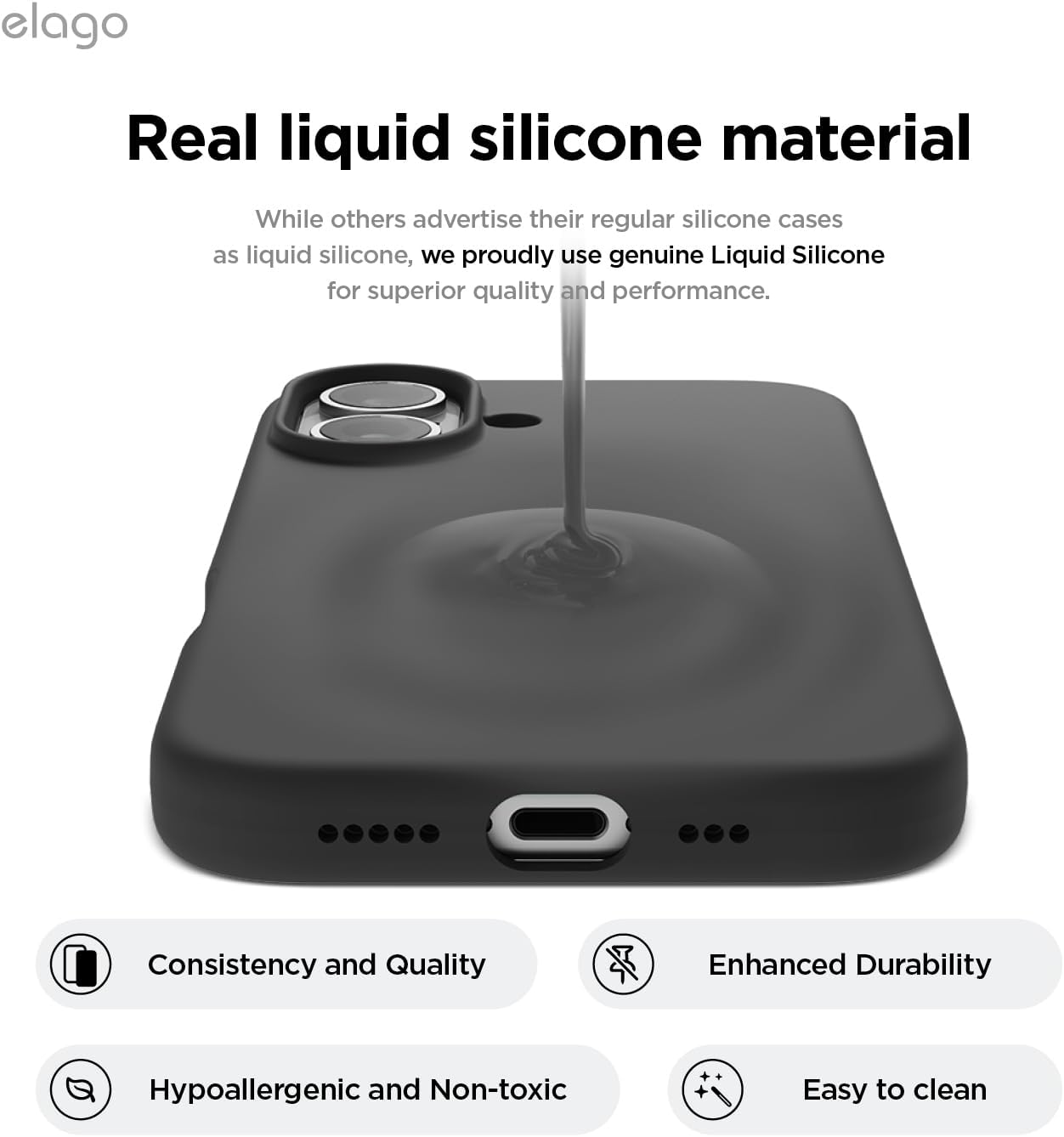 - ¡SE UTILIZÓ SILICONA LÍQUIDA PARA hacer este increíble estuche! ¡El estuche AÑADE GRAN AGARRE Y PROTECCIÓN a su teléfono mientras agrega un SALPICADERO DE COLOR! No sacrifique ningún aspecto de lo que hace que una funda sea excelente al elegir elago. NOTA: DEBIDO A LA AGARRE DE LA CAJA, SE PUEDEN ADHERIR PELUSAS Y OTRAS PARTÍCULAS PEQUEÑAS. ¡SIMPLEMENTE LIMPIE SU ESTUCHE CON UN PAÑO O PAPEL HÚMEDO PARA LIMPIARLO!