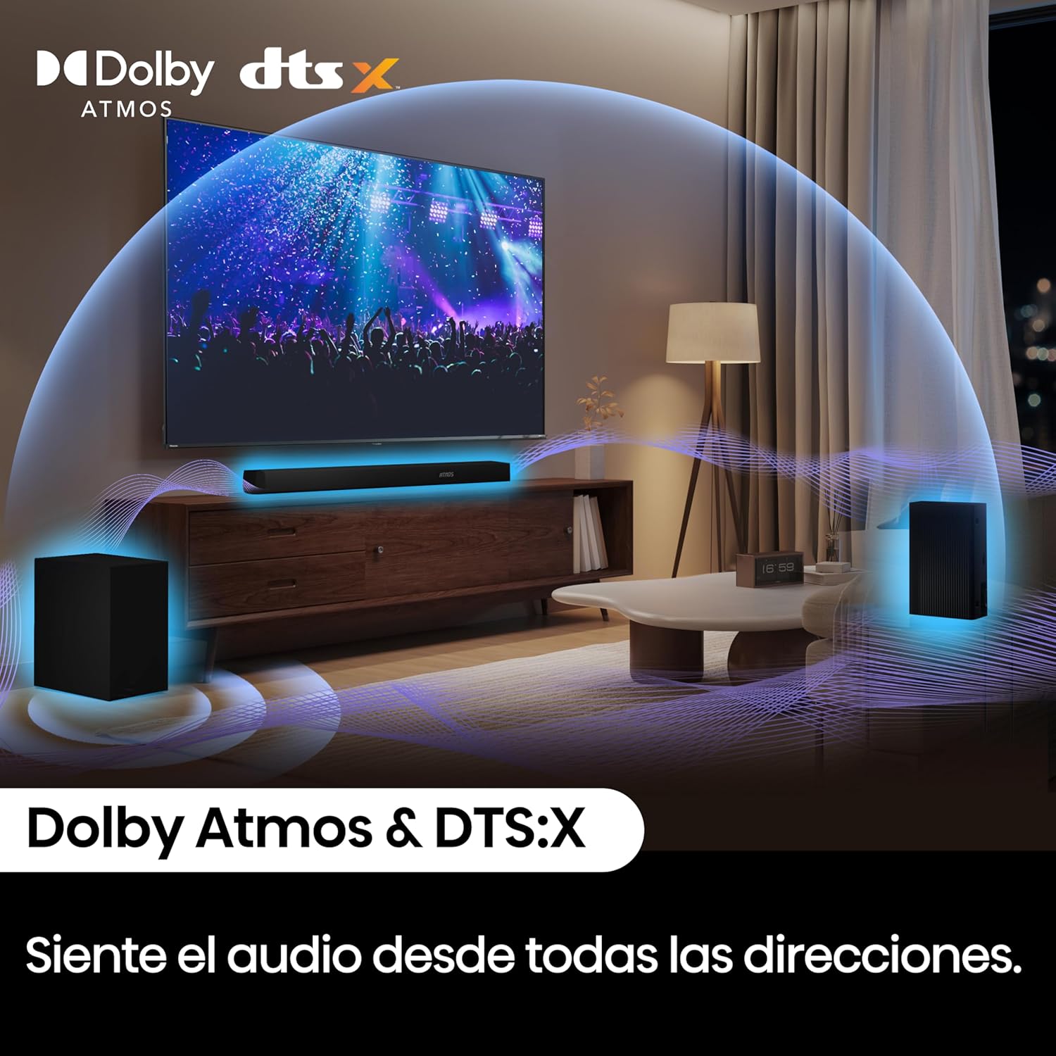 • [Dolby Atmos & DTS:X] Escucha y siente como nunca antes con DTS:X y Dolby Atmos. Los sonidos te rodean desde todas las direcciones para que vivas cada momento como si estuvieras dentro de la acción.