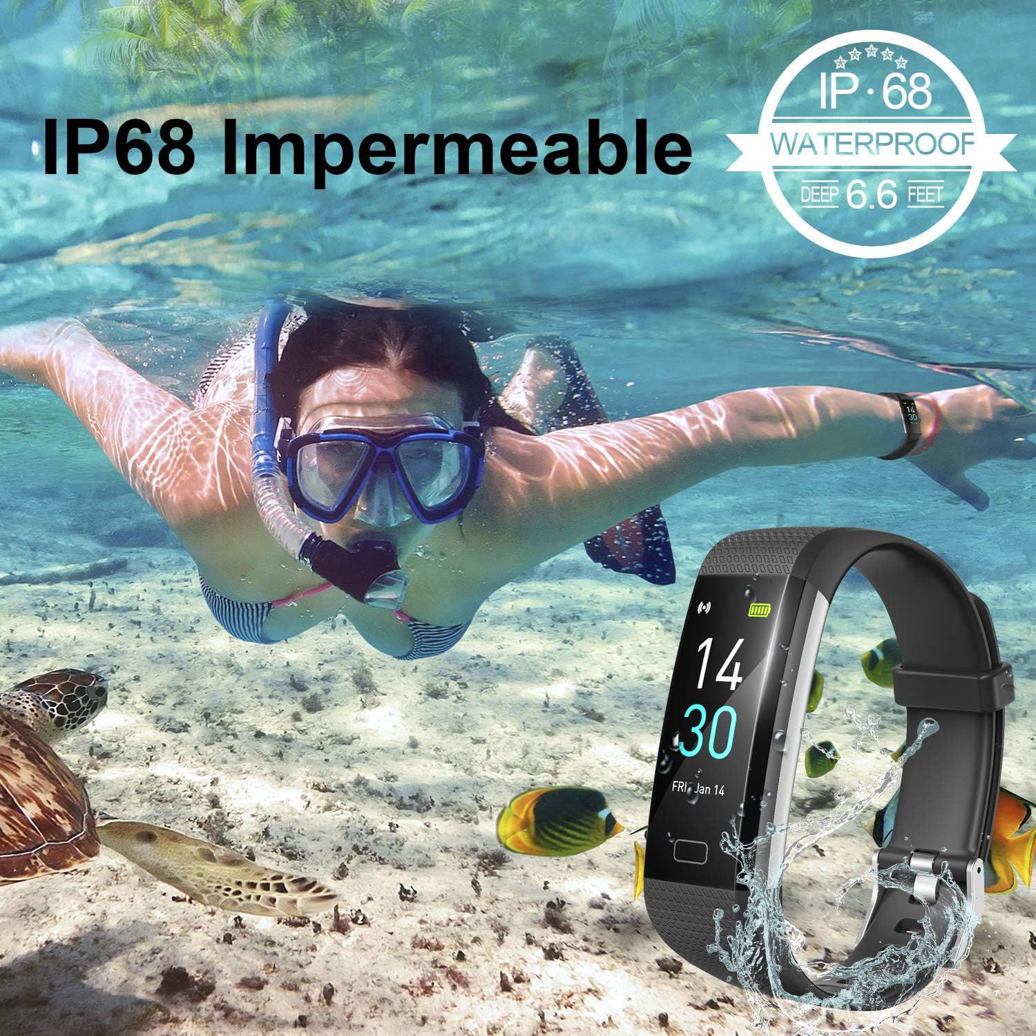 - 【Pantalla OLED y IP68 Resistente al Agua】La pantalla OLED brillante hace que el contenido de la pantalla sigue siendo claramente visible bajo la luz solar directa. La pulsera inteligente a prueba de golpes y agua IP68 puede satisfacer sus necesidades diarias. Instalar la aplicación ‘flagfit’ para conectar su dispositivo. Soportar el sistema Android e iOS.