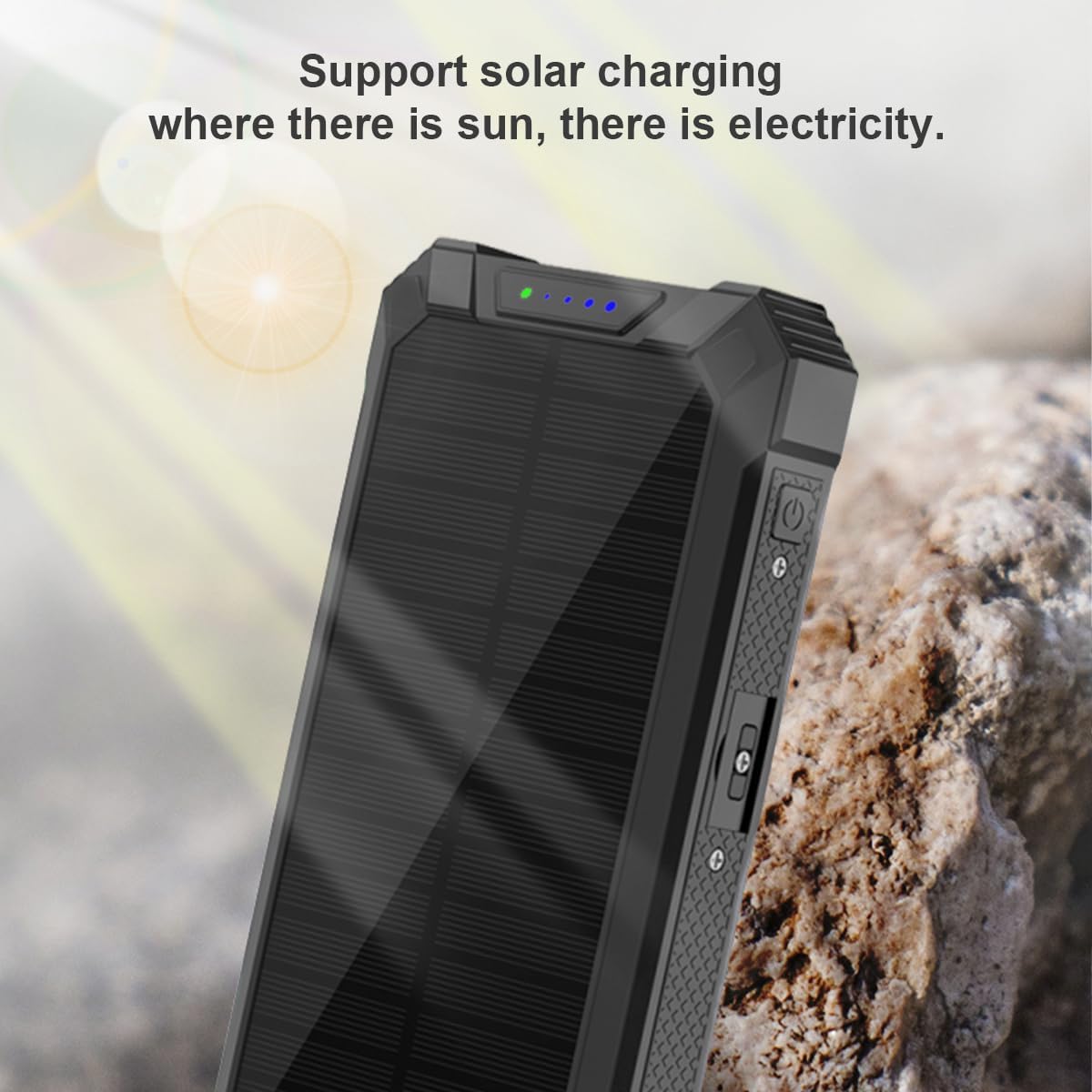 - 【MULTIFUNCTIONAL FLASHLIGHT】: Potente y brillante linterna solar cargador de teléfono móvil es un dispositivo imprescindible al aire libre.Linterna LED se puede utilizar como una linterna de emergencia en el modo de poca luz-fuerte-luz-SOS-estroboscópico. La luz indicadora muestra rápidamente el estado del cargador. La práctica batería solar es un compañero ideal para acampadas, excursiones y otras actividades al aire libre.