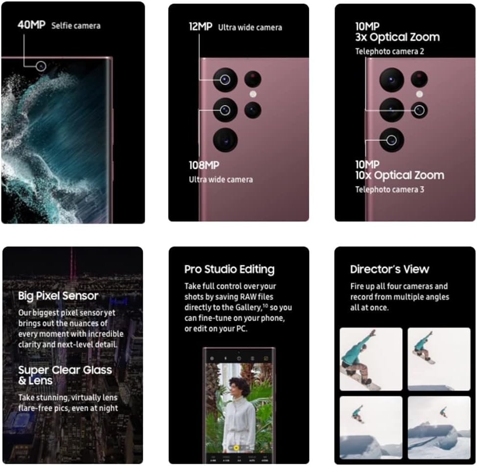 • Cámara trasera: 108MP, f/1.8 + 10MP, f/4.9 + 10MP, f/2.4 + 12MP, f/2.2, cámara frontal: 40MP, f/2.2, Android 12, One UI 4.1